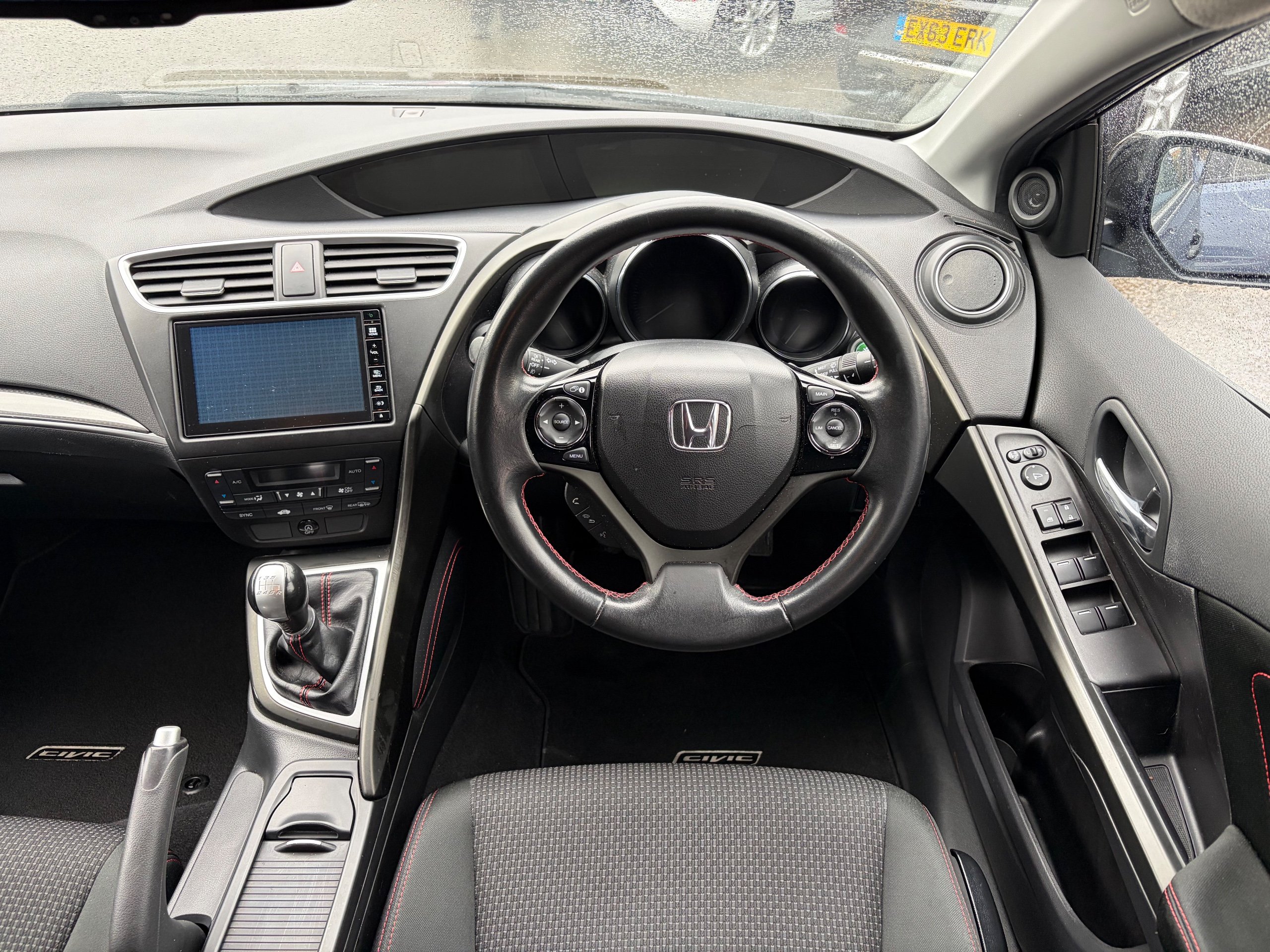 - Front Seats - Steering Wheel and Door Panel with Red Stitch